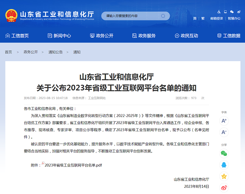 喜報:經典集團入選山東省級工業互聯網重點平臺名單